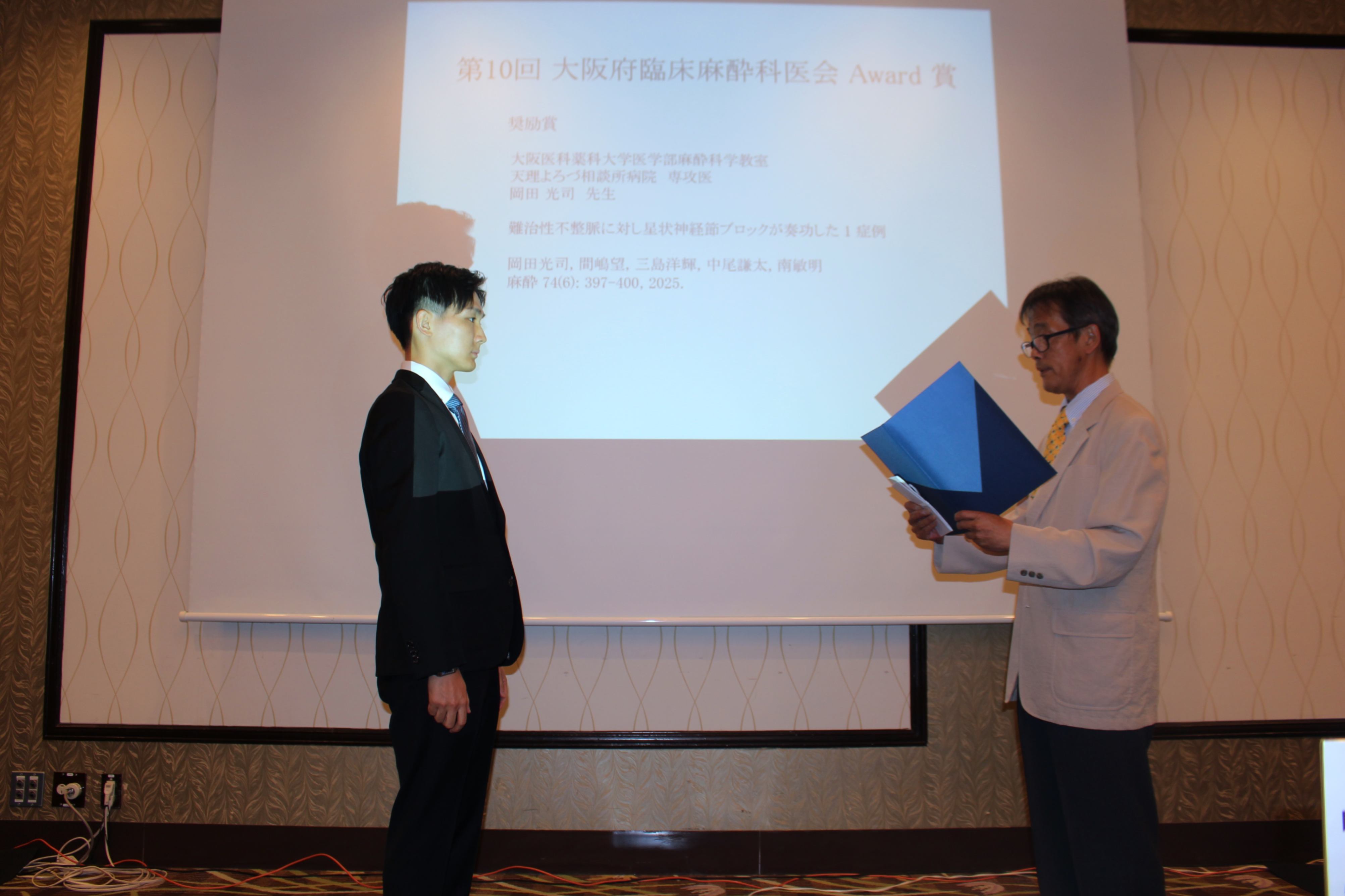 大阪府臨床麻酔科医会Award賞授賞式、会長賞の発表は